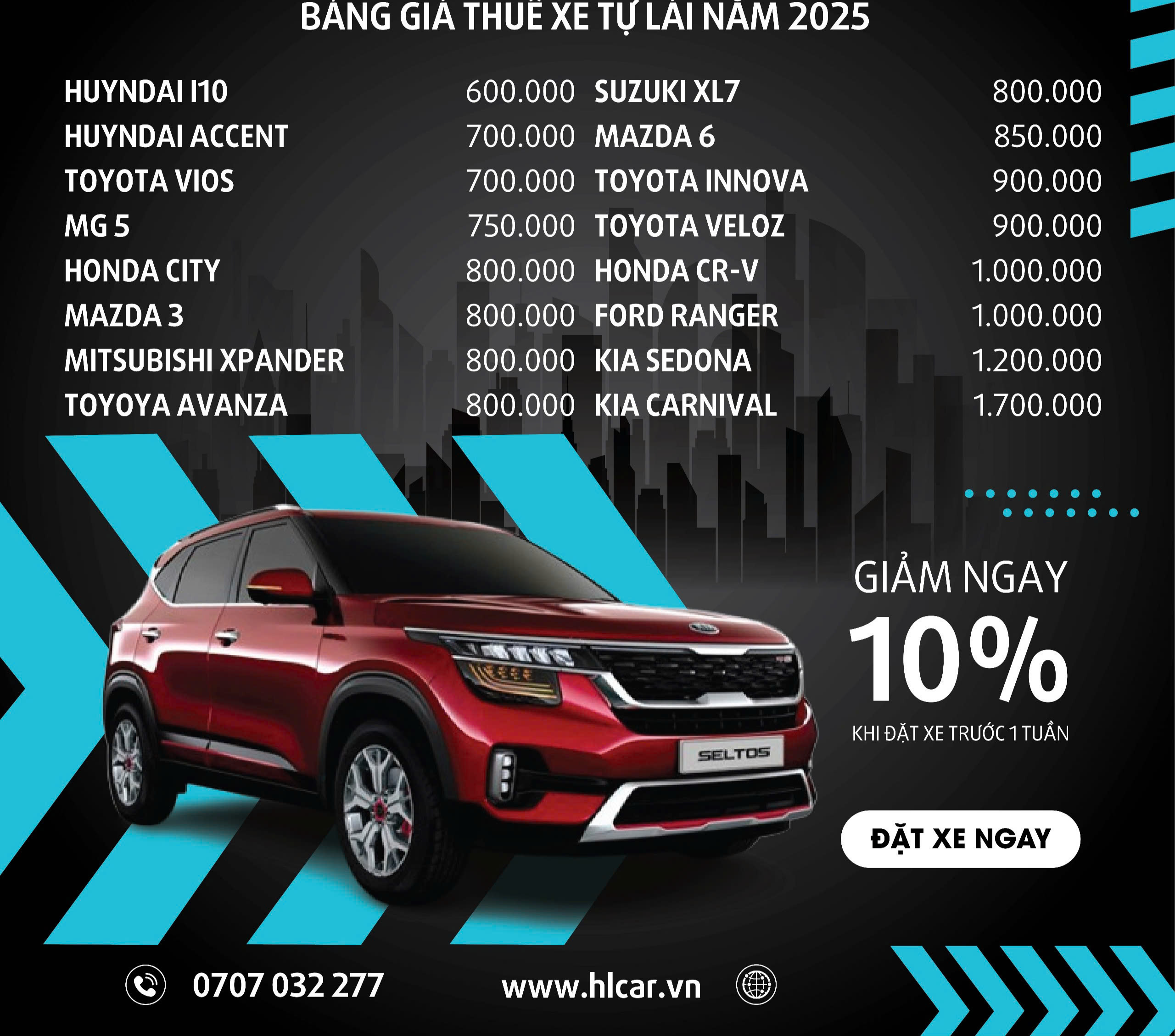 Để chào mừng các dịp lễ lớn trong năm, HL CAR cũng thường xuyên thực hiện các chương trình giảm giá hấp dẫn cho khách hàng. Do đó, khách hàng nên theo dõi thường xuyên để không bỏ lỡ cơ hội tiết kiệm chi phí khi thuê xe.